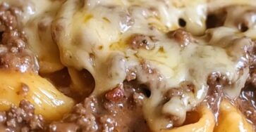 Ingredients: 2 lbs ground beef, browned and drained 2 cans (10.5 oz each) cream of mushroom soup (roasted garlic flavor…