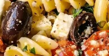 Ingredients: 8 ounces rotini pasta 1 cup cherry tomatoes, halved ½ cup cucumber, diced ½ cup black olives, sliced ½…