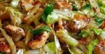 Ingredients: 1 pound boneless, skinless chicken breasts, sliced 1/2 head green cabbage, thinly sliced 1 red bell pepper, sliced 1…