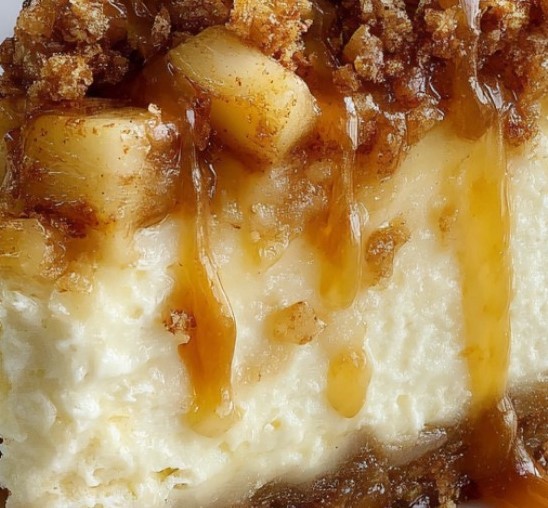 Toss diced apples with brown sugar, cinnamon, and lemon juice. Spoon evenly over the cheesecake layer.