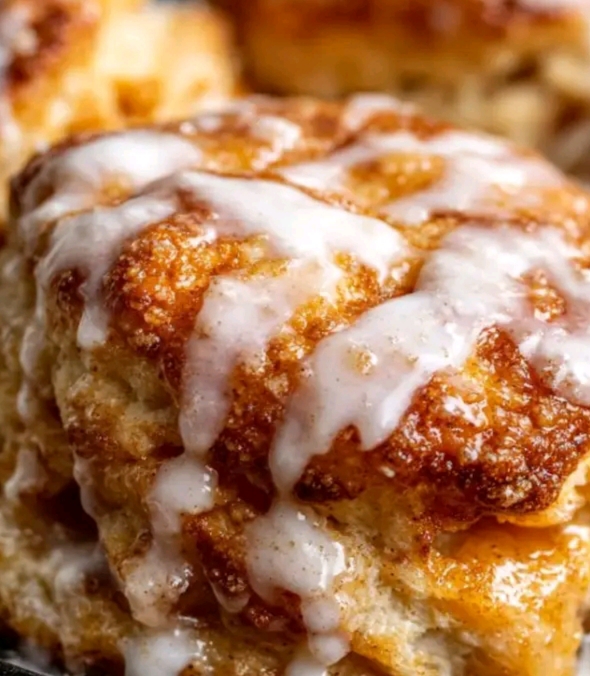 Whisk together powdered sugar, milk, and cinnamon. Drizzle over warm biscuits before serving.