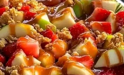 Place the apples and strawberries in a bowl and gently mix.