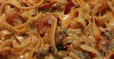Ingredients: 8 oz pasta (fettuccine or penne) 1 tablespoon olive oil 1 pound shrimp, peeled and deveined 1 bell pepper,…