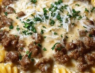 This Beef and Rotini in Garlic Parmesan Sauce is creamy, comforting, and perfect for busy weeknights.