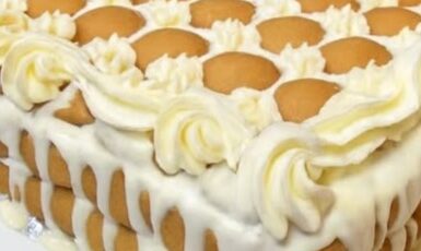 7. Pour frosting over the warm cake and spread evenly. Allow to set before slicing.