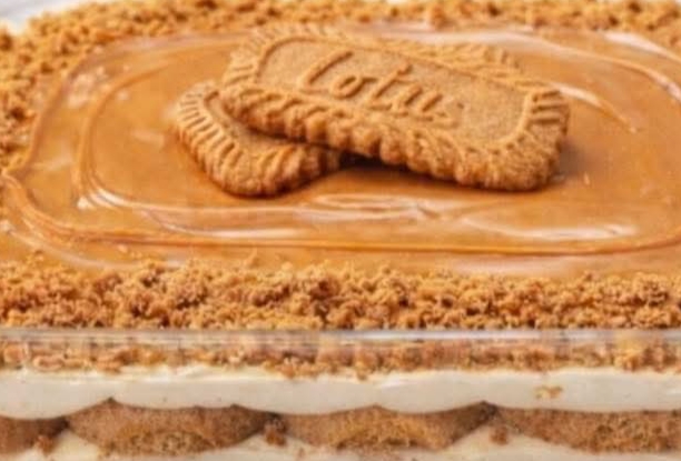 Lightly dip Biscoff cookies into warm milk or coffee (do not soak). Arrange a single layer of cookies in the bottom of a serving dish.