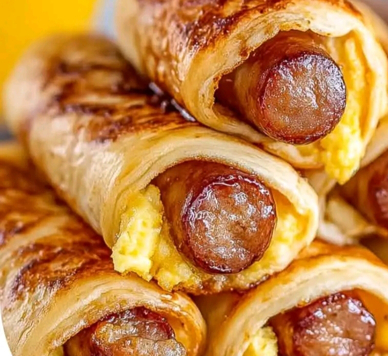 - Wrap it up – Unroll your crescent dough, cut into triangles. Spoon a bit of egg onto each, place a sausage on top, and roll it up like a cozy breakfast burrito.