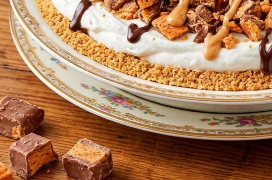 - Sprinkle the remaining Butterfinger pieces over the top.