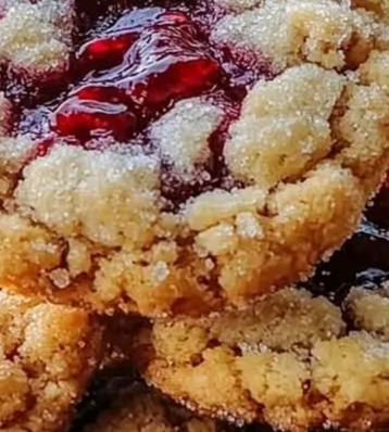 - Spoon 1/2 to 1 tablespoon of raspberry jam into the well of each cookie.