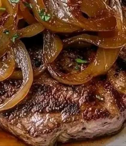 4. Combine & Serve: Slice the steak against the grain and top with caramelized onions. Serve alongside creamy mashed potatoes.