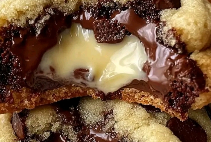 Scoop cookie dough, flatten slightly, and place a frozen cheesecake portion in the center.
