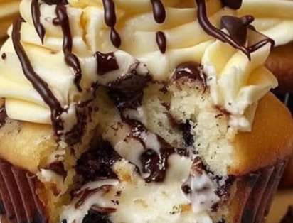- Drizzle melted white chocolate and dark chocolate over the cooled cupcakes.
