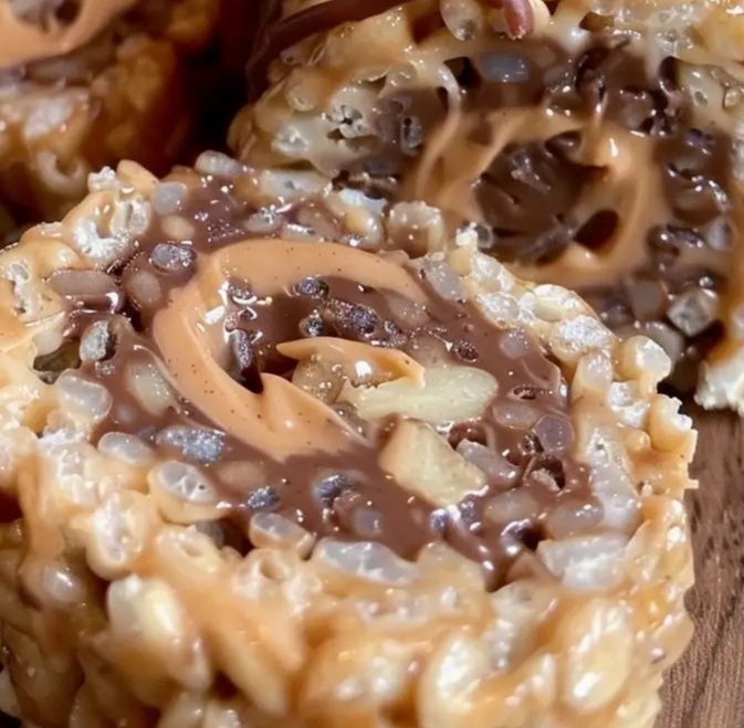 - Melt the peanut butter and chocolate chips together in the microwave in 30-second intervals, stirring until smooth. Spread the mixture evenly over the Rice Krispies layer.