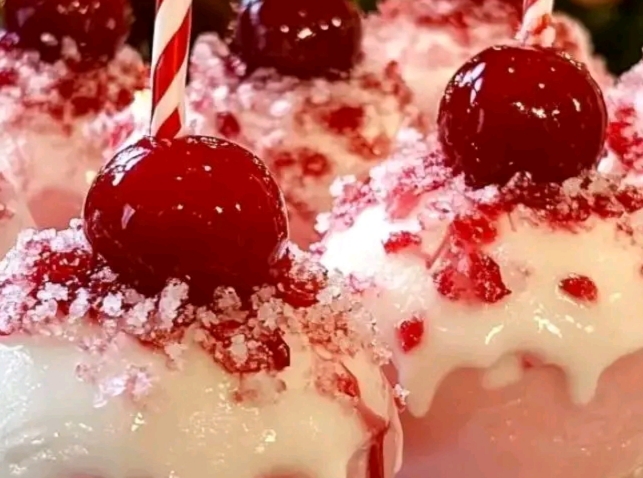 - Scoop out small portions of dough, flatten slightly, then place a maraschino cherry in the center.