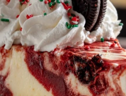 - Remove pan ring. Top with whipped cream, mini Oreos, and sprinkles. Slice with a hot clean knife.