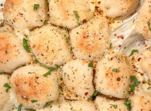 6. Mix melted butter, garlic powder, salt, and Italian seasoning. Brush generously over all dough balls.