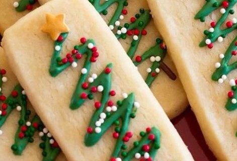 - Pipe green icing in a zigzag pattern to form Christmas trees. Decorate with sprinkles and add a star on top. Allow icing to set before serving.