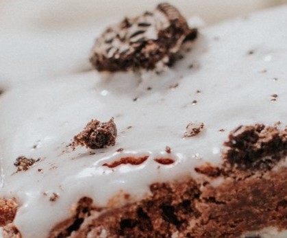 Whisk powdered sugar and milk to make icing, spread on top, and finish with crushed Oreos.