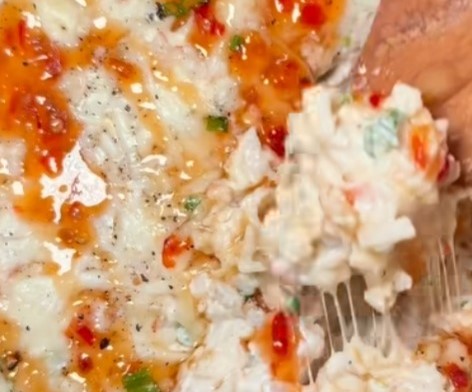 - In a bowl (or directly in a casserole dish), mix crab meat, cream cheese, mayonnaise, sour cream, Worcestershire sauce, soy sauce, 1 cup mozzarella, green onions, garlic, and black pepper until well combined.