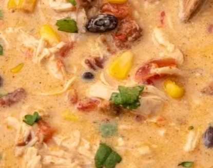 - In a large pot or Dutch oven, add chicken broth, corn, Rotel tomatoes, ranch seasoning, chicken, and white beans. Stir to combine.