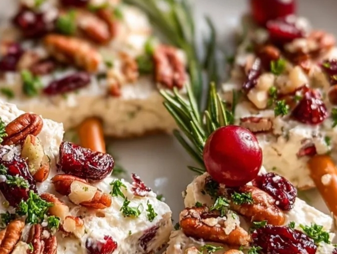 Creamy Cranberry Pecan Christmas Tree Appetizers
