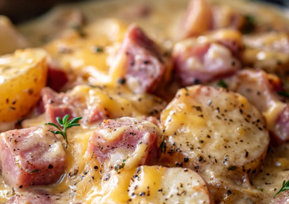- Repeat layers with remaining potatoes, ham, onion, seasoning, and cheese.