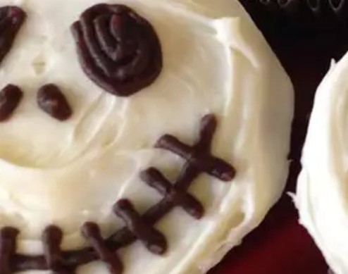 Spread a thin layer of vanilla frosting over each cupcake. Refrigerate for 30 minutes to firm up the surface. - Decorate the skulls: