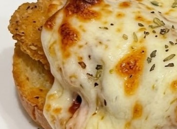 Place one crispy chicken strip on each piece of garlic toast. Spoon marinara sauce over the chicken, then top with a slice of mozzarella and a sprinkle of Parmesan. Finish with a light sprinkle of Italian seasoning.