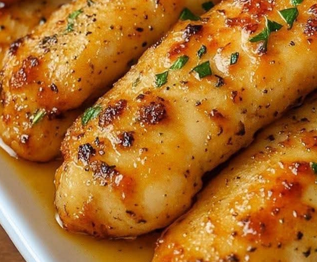 - Toss the crispy chicken strips in the warm honey butter garlic sauce and serve immediately.