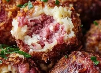 - Heat oil in a deep skillet or fryer over medium heat. Once the oil is hot, carefully add the Reuben balls in batches, frying until golden brown and crispy, about 3-4 minutes per side.
