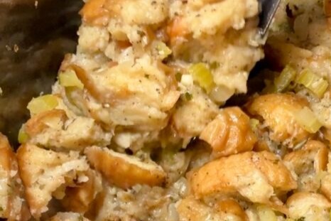 - Sauté butter, onions, celery, and garlic for 7–8 minutes.