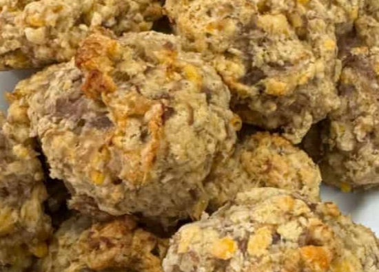 - In a mixer, combine pancake mix, cheddar cheese, sausage, and milk until fully mixed.