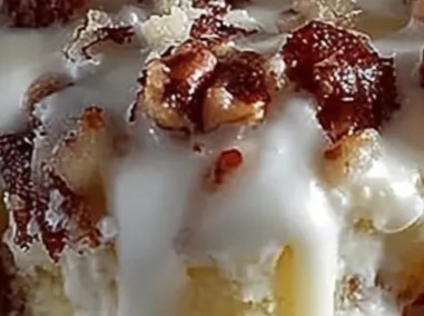- Spread glaze over the cooled cake and top with chopped pecans.