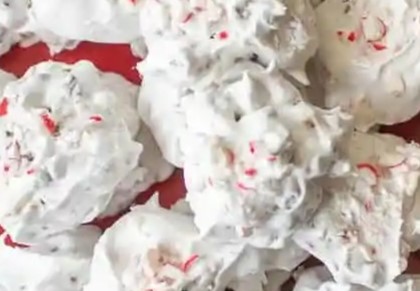 5. Drop spoonfuls of meringue onto baking sheets. Add crushed candy canes if using.