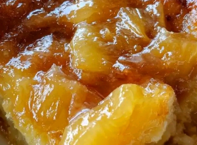 - Sprinkle the dry yellow cake mix evenly over the pineapple. Do not mix.