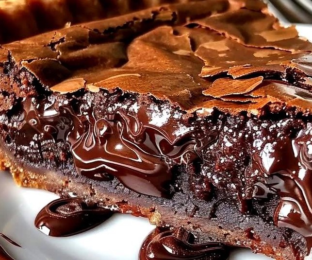 Pour the batter into the prepared pan and bake for 35–40 minutes. The center should be puffed and the top cracked, but the inside should remain slightly gooey.