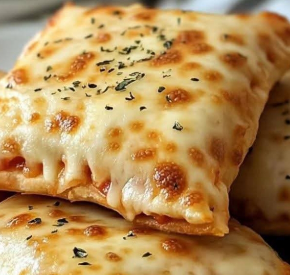 Fold the dough over to form a pocket and press the edges with a fork to seal . - Brush and Bake: Brush each pizza pocket with a light layer of olive oil or melted butter.Sprinkle a little Parmesan cheese on top for extra flavor.
