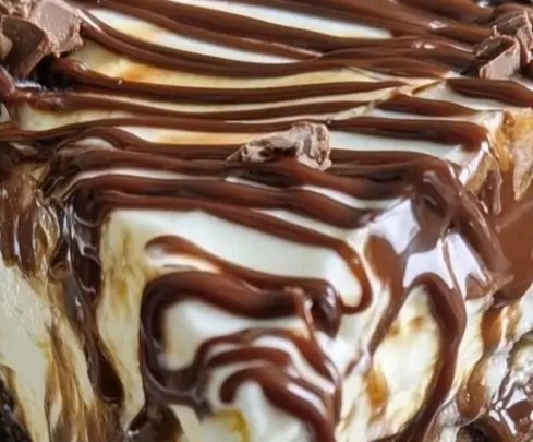 - Warm the hot fudge sauce and pour it over the chilled cheesecake.