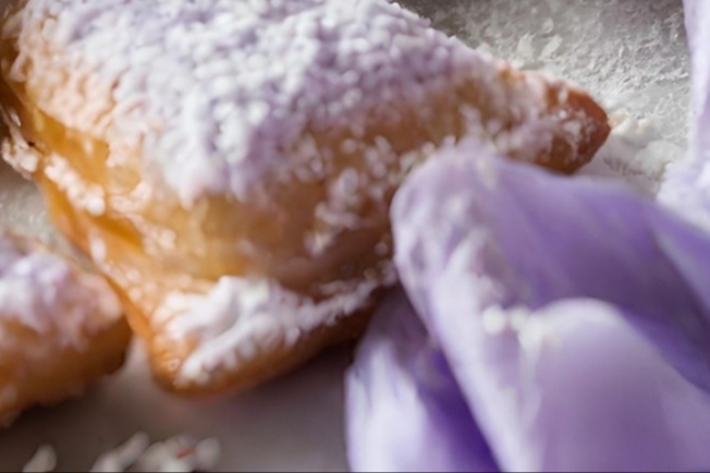 - Fill beignets with lavender cream using a piping bag. Spread about 1 tablespoon icing on top of each. Serve immediately.