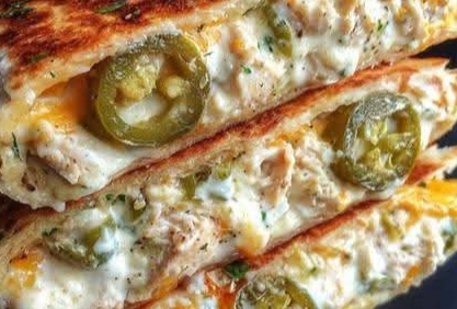 - Add a slice of cheese, then a scoop of jalapeño popper chicken.