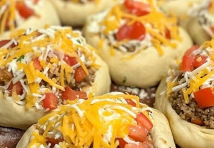 Warm the queso sauce and drizzle generously over the baked pizza bombs.