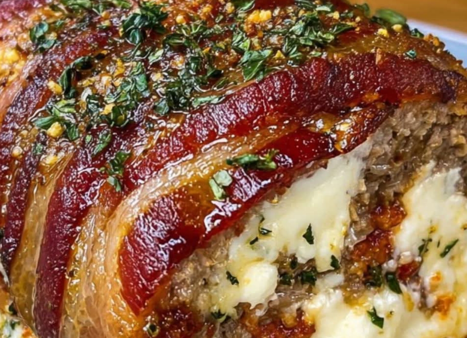 Mozzarella Stuffed Bacon Wrapped Meatloaf