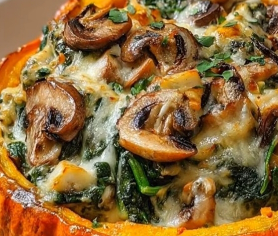 Mushroom and Spinach Stuffed Pumpkin