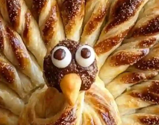 - Place the second sheet of puff pastry on top and press gently to seal. Cut out the turkey shape fully and remove excess pastry.