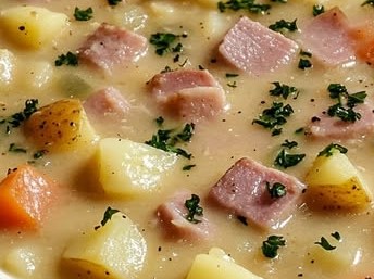 Pour in the chicken broth and add the diced potatoes. Bring to a boil, then reduce heat and simmer for 15–20 minutes, or until the potatoes are tender. - Incorporate the ham and seasonings:
