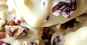 Ingredients: 12 oz white chocolate chips 1 cup dried cranberries 1 cup pecan halves 1 teaspoon vanilla extract Pinch of…