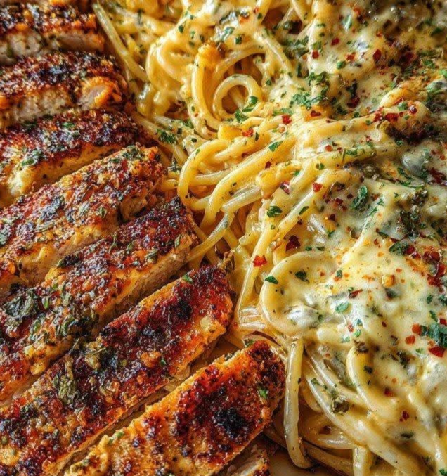 Add Italian seasoning and dried basil. Return the chicken to the skillet and toss in the cooked spaghetti. Mix well until everything is evenly coated with the creamy Cajun sauce. - Serve:
