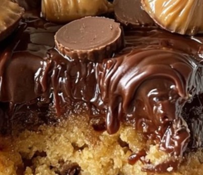 - Sprinkle the dry chocolate cake mix evenly over the peanut butter. Do not mix.
