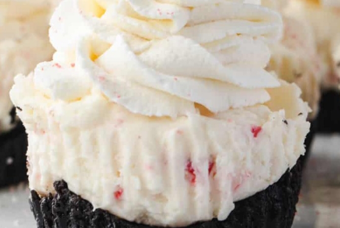 - Pulse Oreos into fine crumbs and mix with melted butter. Press about 1½ tablespoons into each liner.