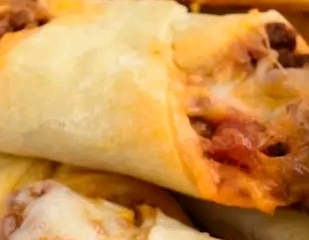 - Place a spoonful of the beef mixture on one side of each pastry piece. Sprinkle with shredded cheese.